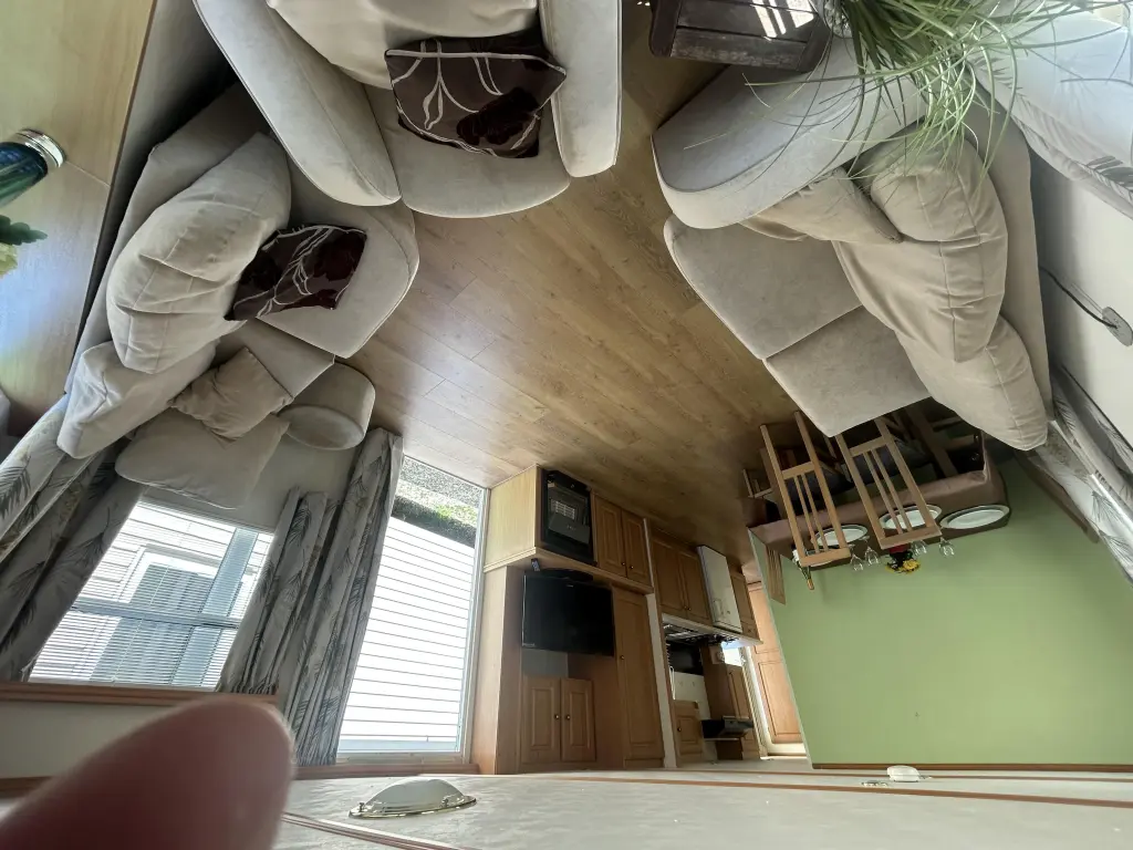 Alles is goed aan deze stacaravan, niets mankeert eraan of zitten deuken of plekken op.